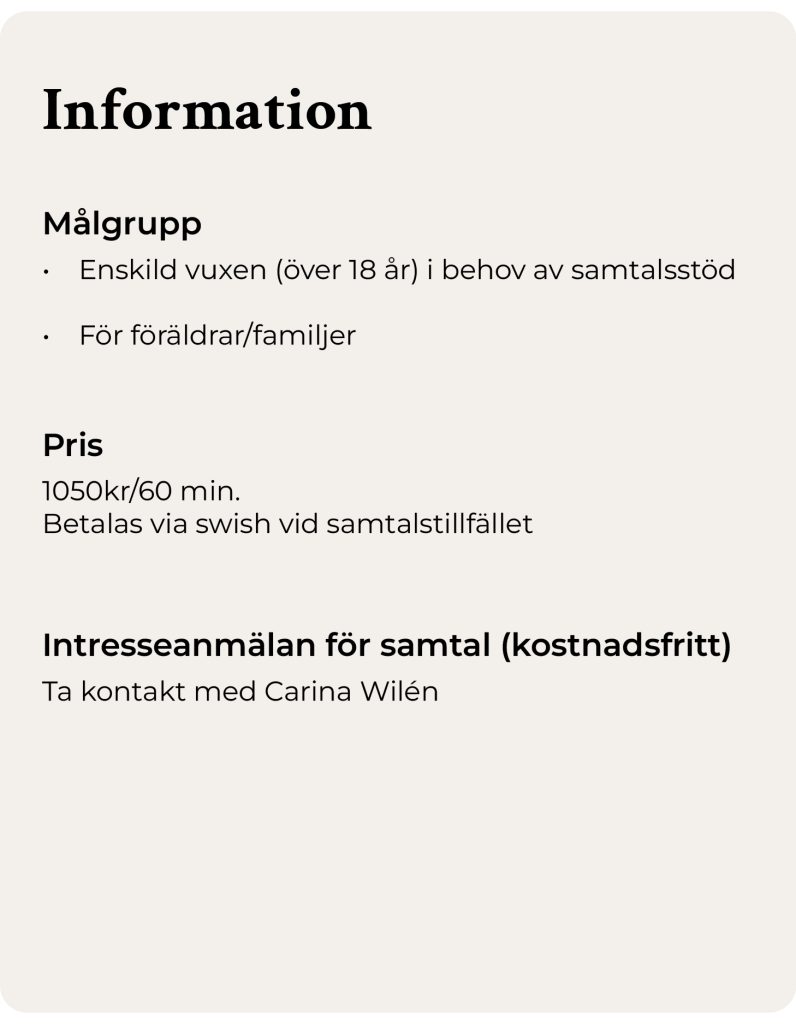 Till skillnad mot Magelungen övriga behandlingsinsatser tar samtalsmottagningen emot uppdrag även från dig som privatperson. Det innebär att du som enskild bekostar samtalsstöd själv.